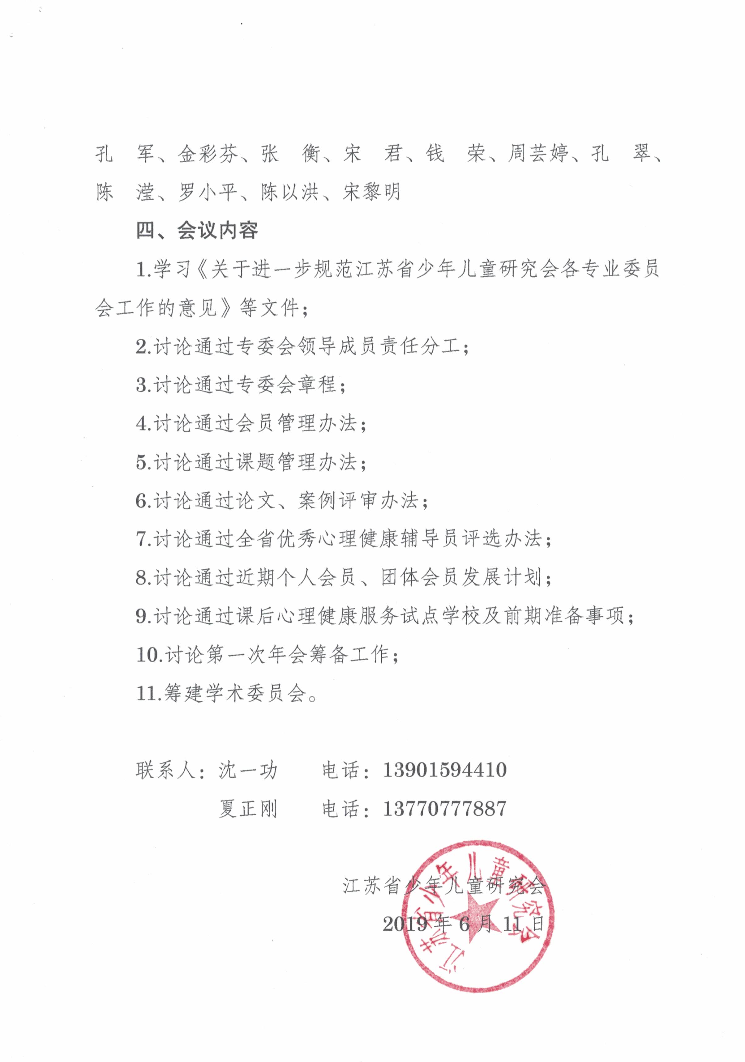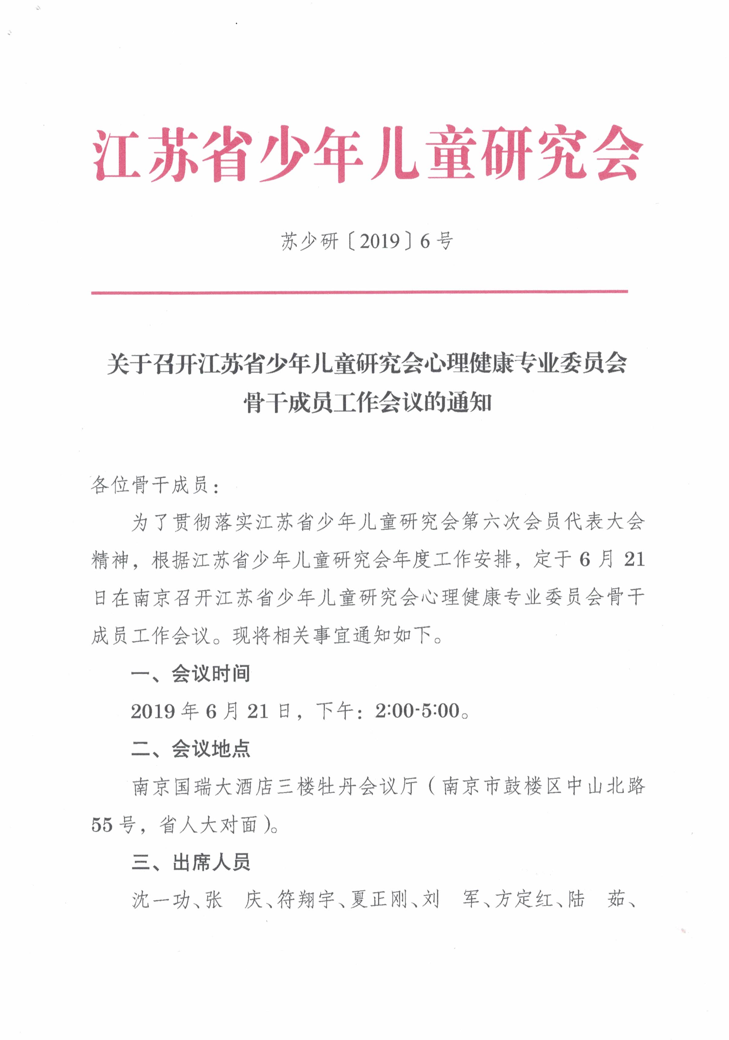 关于召开江苏省少年儿童研究会心理健康专业委员会骨干成员工作会议的通知(苏少研〔2019〕6号)