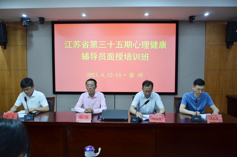 2021年6月12日,江苏省第三十五期心理健康辅导员专业技能面授培训班在泰州学院举办。省少年儿童研究会副会长、江苏心理健康辅导员管理服务中心主任沈一功,省少先队总辅导员助理聂德勇,泰州学院学工处副处长朱诚,江苏心理健康辅导员管理服务中心执行主任夏正刚等参加了开班活动。