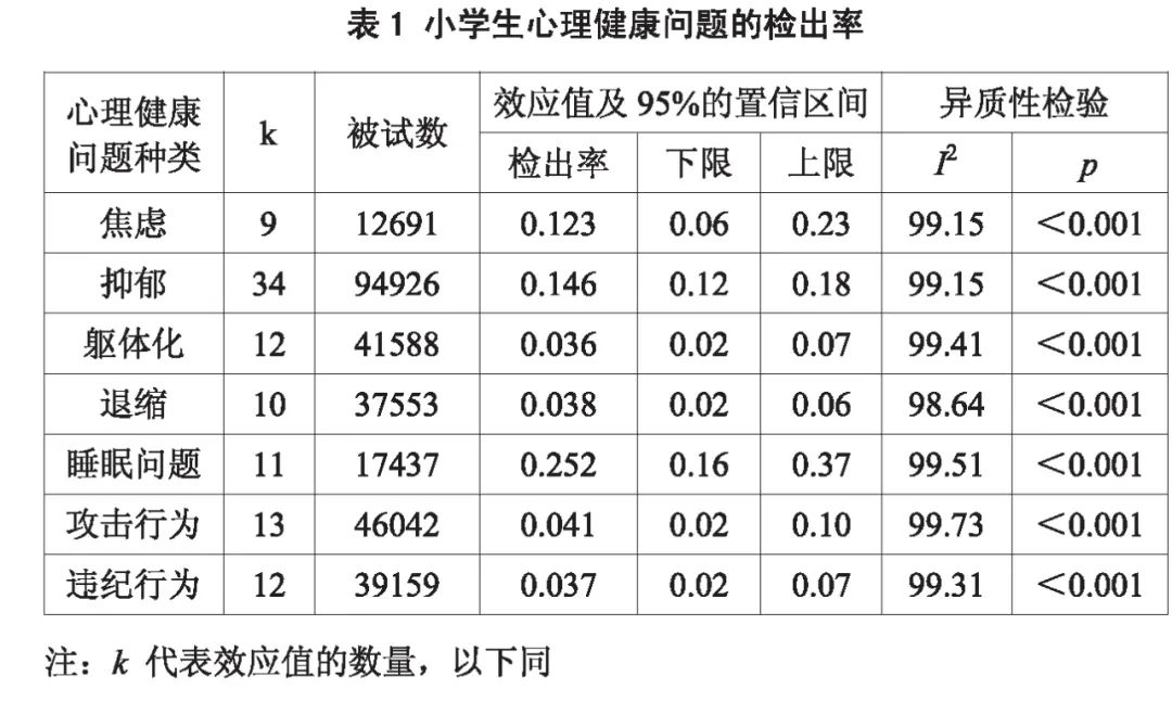 关键词:中国学生;心理健康问题;检出率;元分析;教育启示