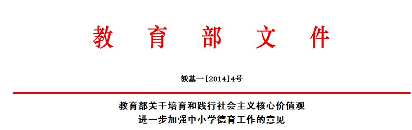 社会主义核心价值观是中国特色社会主义的本质体现。培育和践行社会主义核心价值观、加强中小学德育是推进中国特色社会主义事业的必然要求,是深化教育领域综合改革、促进学生健康成长的现实选择。为贯彻党的十八大和十八届二中、三中全会精神,落实《中共中央办公厅关于培育和践行社会主义核心价值观的意见》(中办发〔2013〕24号),切实把立德树人作为教育的根本任务,针对当前的新形势新要求,现就培育和践行社会主义核心价值观,进一步增强中小学德育的时代性、规律性、实效性,提出如下意见。