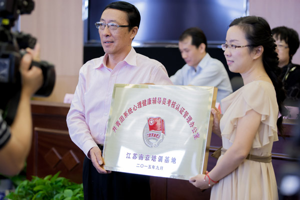 开班仪式上,共青团系统心理健康辅导员考核认证管理办公室江苏管理服务中心主任沈一功向江苏第二师范学院团委颁发了“共青团系统心理健康辅导员考核认证管理办公室江苏南京培训基地铜牌”。