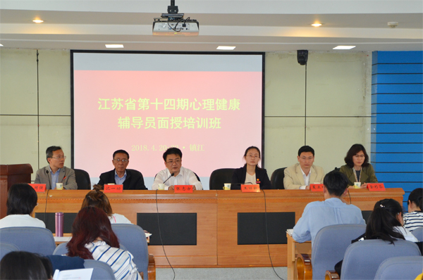 2018年4月20日下午,江苏省第十四期心理健康辅导员面授培训班在江苏大学举办,省少工委副主任、团省委中少部部长张志方,省青年研究会副会长、共青团系统心理健康辅导员考核认证管理办公室江苏管理服务中心主任沈一功,江苏大学团委书记王丽敏,江苏大学团委组织部部长陈国强,共青团系统心理健康辅导员考核认证管理办公室江苏管理服务中心执行主任夏正刚,共青团系统心理健康辅导员考核认证管理办公室高级培训师金彩芬等参加了活动。