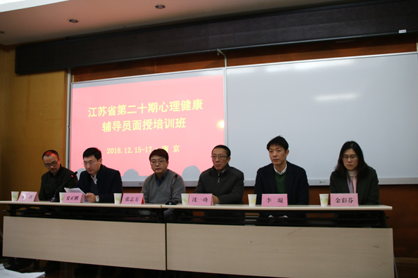 2018年12月15日至17日,江苏省第二十期心理健康辅导员专业技能面授培训班在南京林业大学举办。省少工委副主任、团省委中学共青团和少先队工作部部长张志方,省青年研究会副会长、共青团系统心理健康辅导员考核认证管理办公室江苏管理服务中心主任沈一功,团省委中学共青团和少先队工作部副部长李琨,共青团系统心理健康辅导员考核认证管理办公室江苏管理服务中心执行主任夏正刚,共青团系统心理健康辅导员考核认证管理办公室高级培训师金彩芬,南京科技职业技术学院心理健康中心心理咨询师宋君等参加了开班活动。