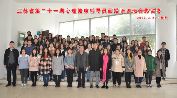 2019年3月29日至31日,由中国少年儿童发展服务中心指导,江苏省少工委办公室、江苏省学联秘书处、共青团系统心理健康辅导员考核认证管理办公室江苏管理服务中心主办,常熟理工学院校团委承办的“江苏省第二十一期心理健康辅导员专业技能面授培训班”在常熟理工学院东湖校区举办。省青年研究会副会长、省少年儿童研究会副会长、共青团系统心理健康辅导员考核认证管理办公室江苏管理服务中心主任沈一功,常熟理工学院校团委副书记尹自强,共青团系统心理健康辅导员考核认证管理办公室江苏管理服务中心执行主任夏正刚,共青团系统心理健康辅导员考核认证管理办公室高级培训师金彩芬等参加了开班活动。
