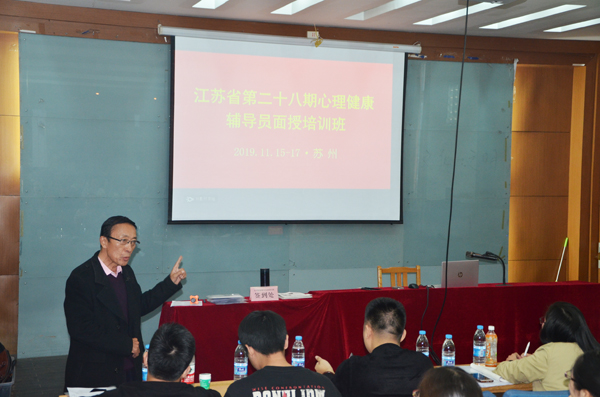 2019年11月15日下午,江苏省第二十八期心理健康辅导员面授培训班在苏州科技大学江枫校区举办。省青年研究会副会长、省少年儿童研究会副会长、共青团系统心理健康辅导员考核认证管理办公室江苏管理服务中心主任沈一功在培训前为学员作动员讲话。