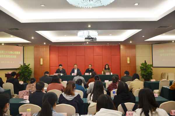 2020年11月6日上午,江苏省第二十九期心理健康辅导员专业技能面授培训班在江苏第二师范学院百草园宾馆举办。省少年儿童研究会副会长、共青团系统心理健康辅导员考核认证管理办公室江苏管理服务中心主任沈一功,省少先队总辅导员助理、省少年儿童研究会副秘书长聂德勇,共青团系统心理健康辅导员考核认证管理办公室江苏管理服务中心执行主任夏正刚,共青团系统心理健康辅导员考核认证管理办公室高级培训师金彩芬等参加了开班活动。
