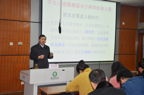 安徽师范大学心理咨询研究所所长、博士生导师方双虎教授作题为《新时代少年儿童心理健康教育的理念与方法》的专题报告。