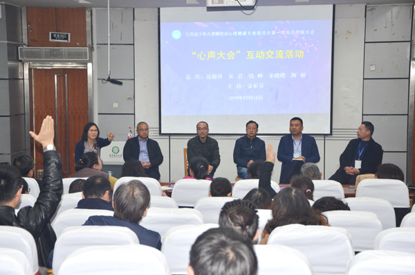会议的最后一场活动是“心声大会”,它是一项开放式的全现场互动交流活动,活动宗旨为:倾听会员心声,汇聚会员智慧,服务会员需求。本场活动邀请了有关领导、青少年心理专家、中小学校长和心理研训员作为活动嘉宾,与大家分享各自在心理健康领域的工作体会和经验,并进行现场互动,为大家解疑答惑。活动现场气氛热烈,与会者发言踊跃,嘉宾们解答精辟,现场掌声不断。