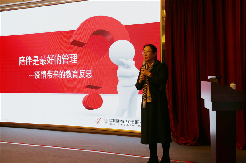 中国青少年研究中心少儿所所长孙宏艳研究员作题为《陪伴是最好的管理——疫情带来的教育反思》的主题报告。