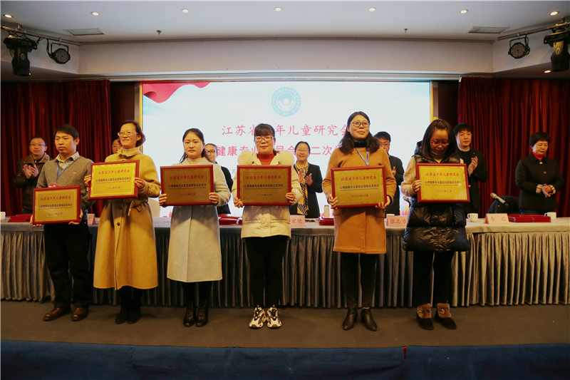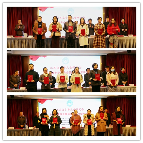 向首届“江苏省优秀心理健康辅导员”代表颁发荣誉证书。