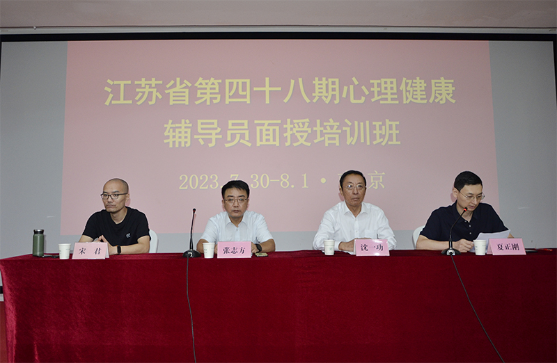 2023年7月30日,江苏省第四十八期心理健康辅导员专业技能面授培训班在南京林业大学培训中心举办。省少先队总辅导员、省少工委副主任、团省委一级调研员张志方,省少年儿童研究会副会长兼心理健康专委会主任沈一功,省少年儿童研究会心理健康专委会秘书长夏正刚,南京科技职业学院心理健康教育中心副主任宋君等参加了开班活动。
