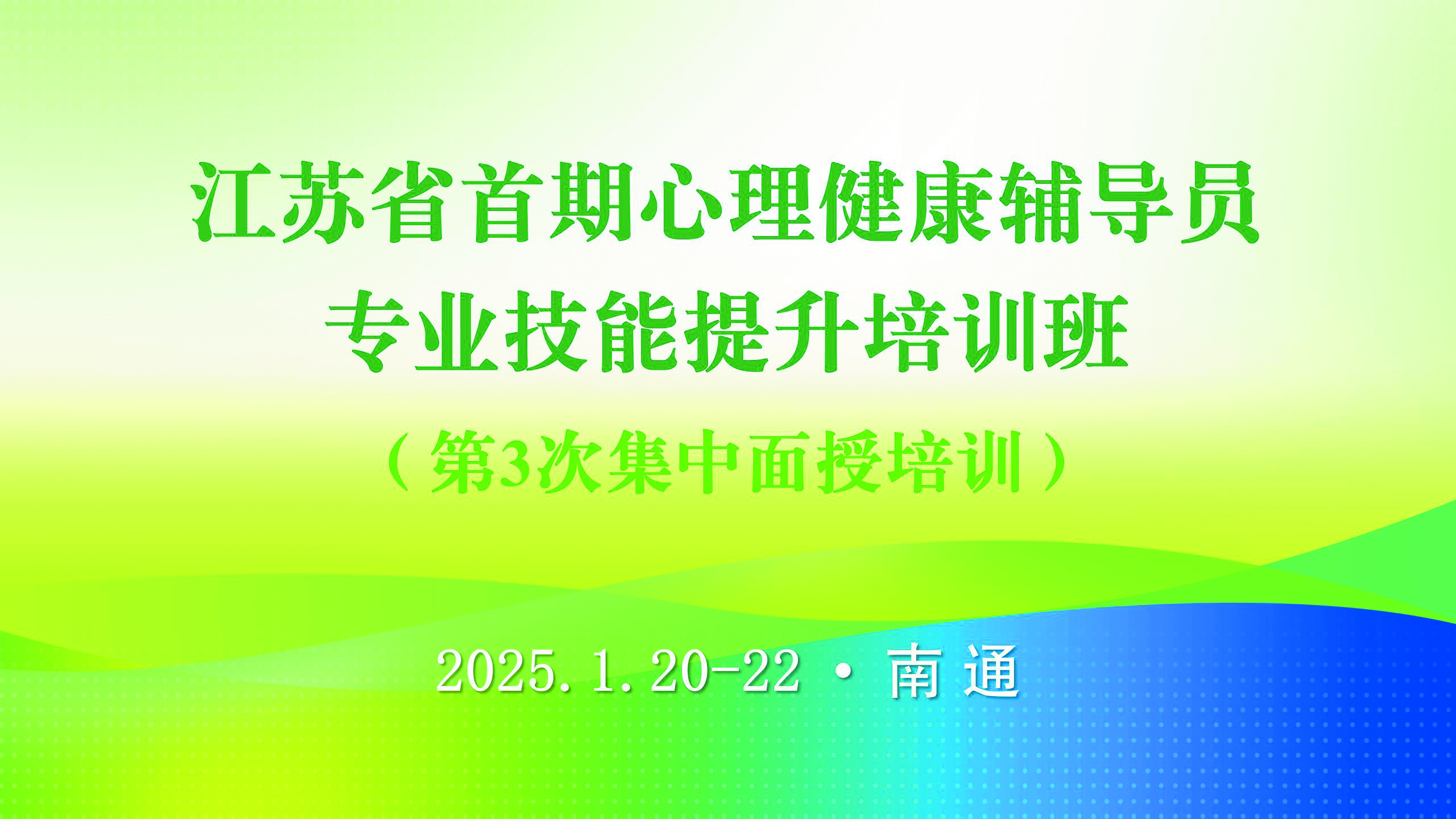1月20日至22日,江苏省首期(2024年崇川区第一期)心理健康辅导员专业技能提升培训班第3次集中面授培训在南通市市北文体中心举办。南通市崇川区及周边城市的中小学校长和专(兼)职心理教师等共约50人参加培训。