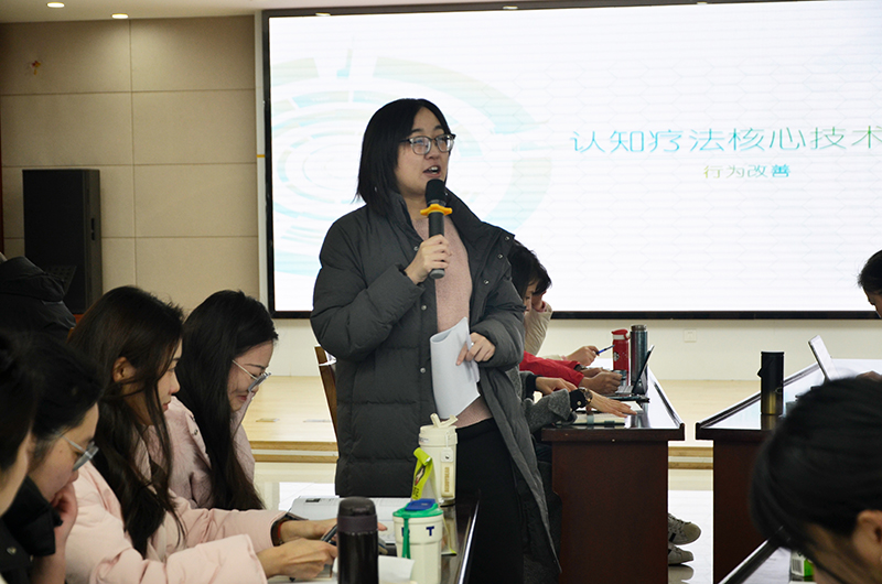 培训期间,南京卫生高等职业技术学校专职心理教师,精神、心理双硕士,教育学博士姜欣悦老师给学员们开展了《认知行为疗法核心技术——行为技术》专业技术培训。
