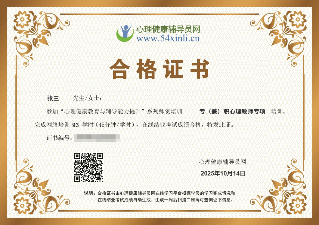3.培训方式:先完成网络课程学习,再参加集中面授培训和网络团体案例督导。
